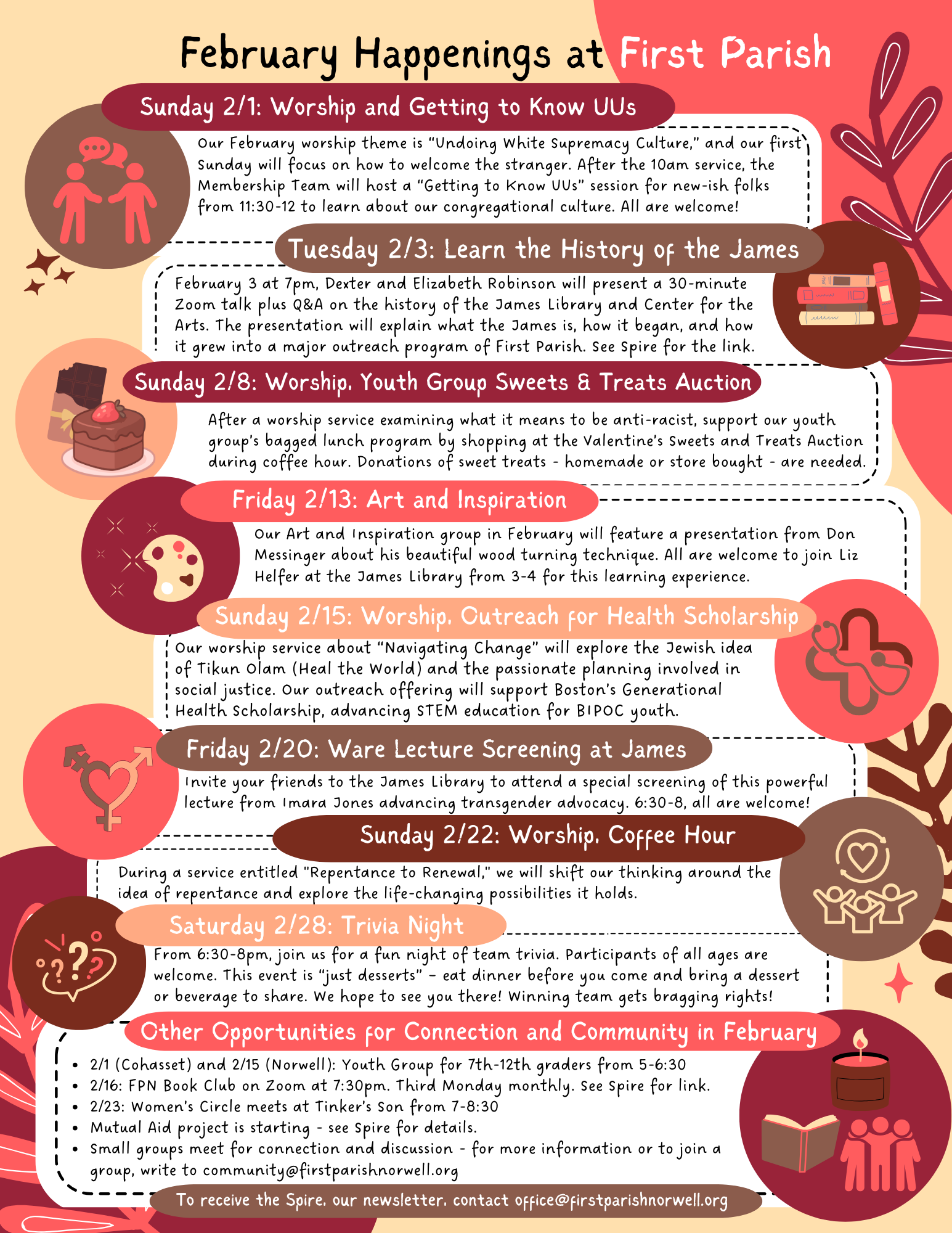 Our February worship theme is "Undoing White Supremacy Culture." We hope you will join us one or all of the Sundays.